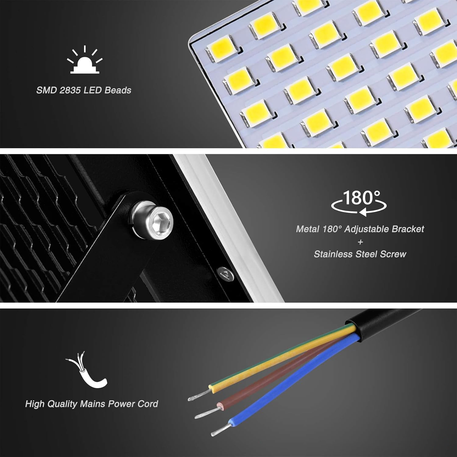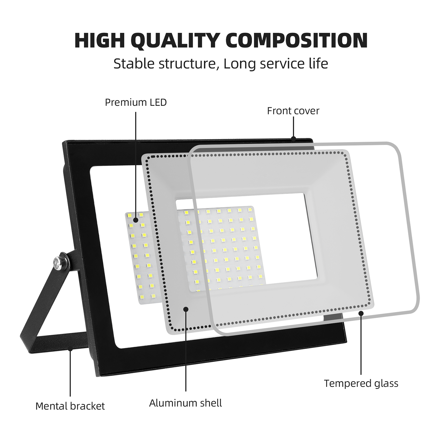 Material: Die-cast aluminum + Tempered glass