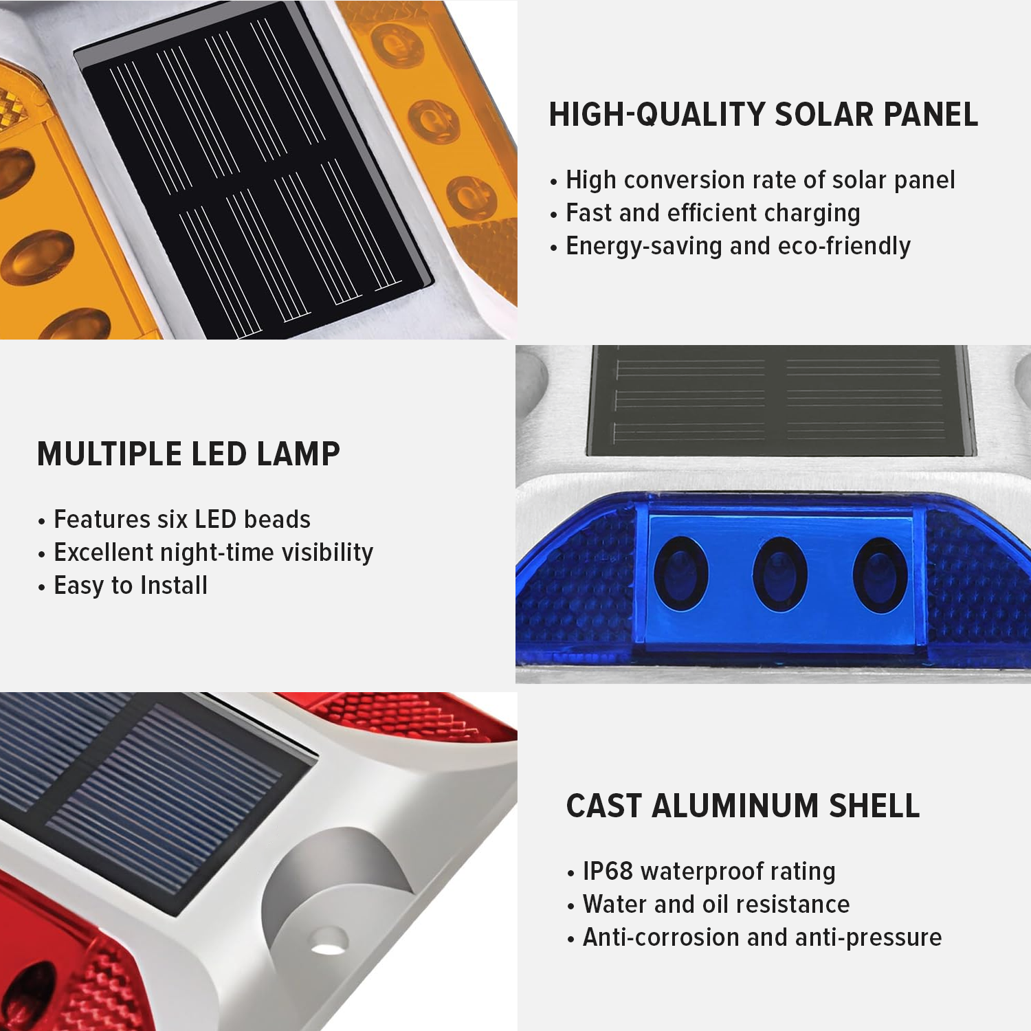 π Solar Panel: Monocrystalline 2.0V 120mA π Battery: 1.2V / 600mAh NI-MH π‘ LED Source: 6pcs high-brightness LEDs π LED Colors: Red π΄ | Yellow π‘ | Green π’ | Blue π΅ | White βͺ β‘ Working Mode: Flashing β¨ π¦ Waterproof Rating: IP68 (Highly resistant to water and dust) ποΈ Body Material: PC + Die-Casting Aluminum (Durable & Sturdy) π Size: 105 x 105 x 20MM