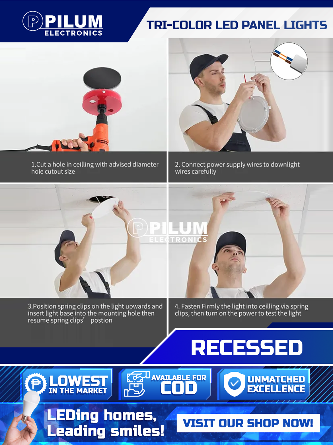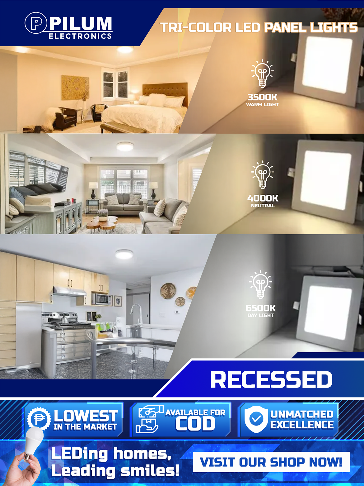 New installations or lighting upgrades PILUM is your trusted name for reliable, future-ready lighting. Enhance your ambiance with smart simplicity—choose the PILUM LED Tri-color Recessed Light today.